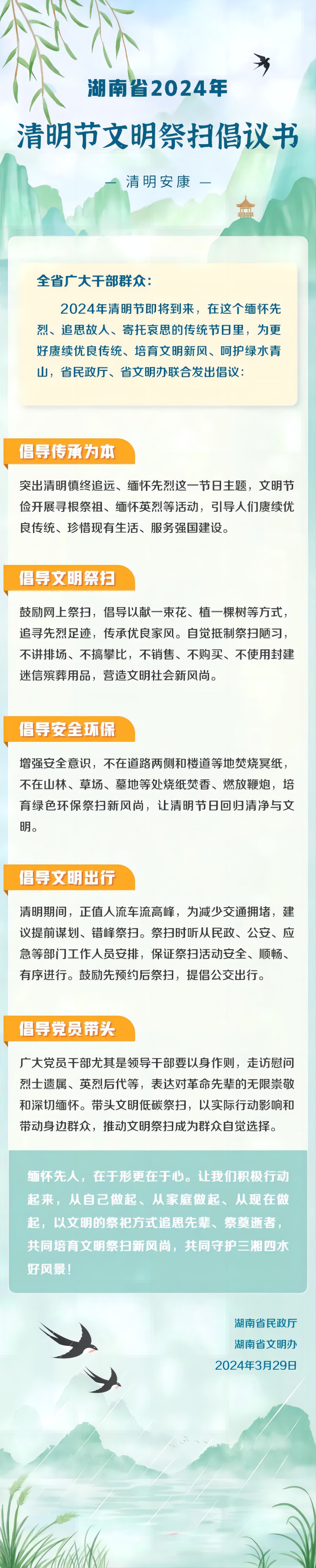 清明節(jié)文明祭掃倡議書(shū)(轉(zhuǎn)自湖南省民政廳、湖南省文明辦)