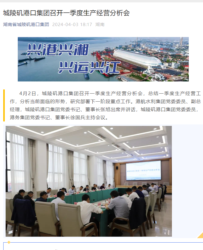 城陵磯港口集團召開一季度生產(chǎn)經(jīng)營分析會
