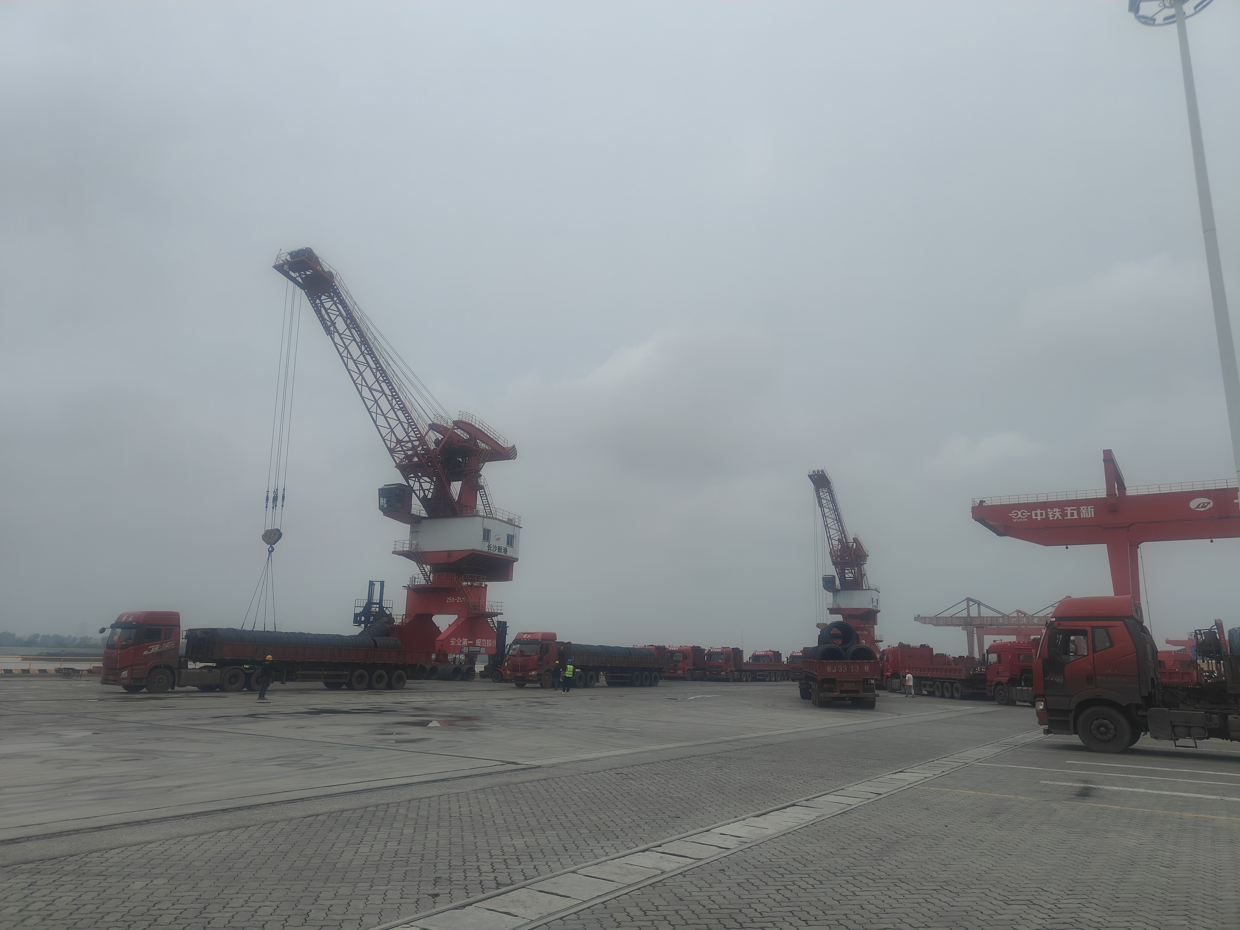 圖為“五一”期間,長(zhǎng)沙新港專用鐵路正在裝卸鋼卷