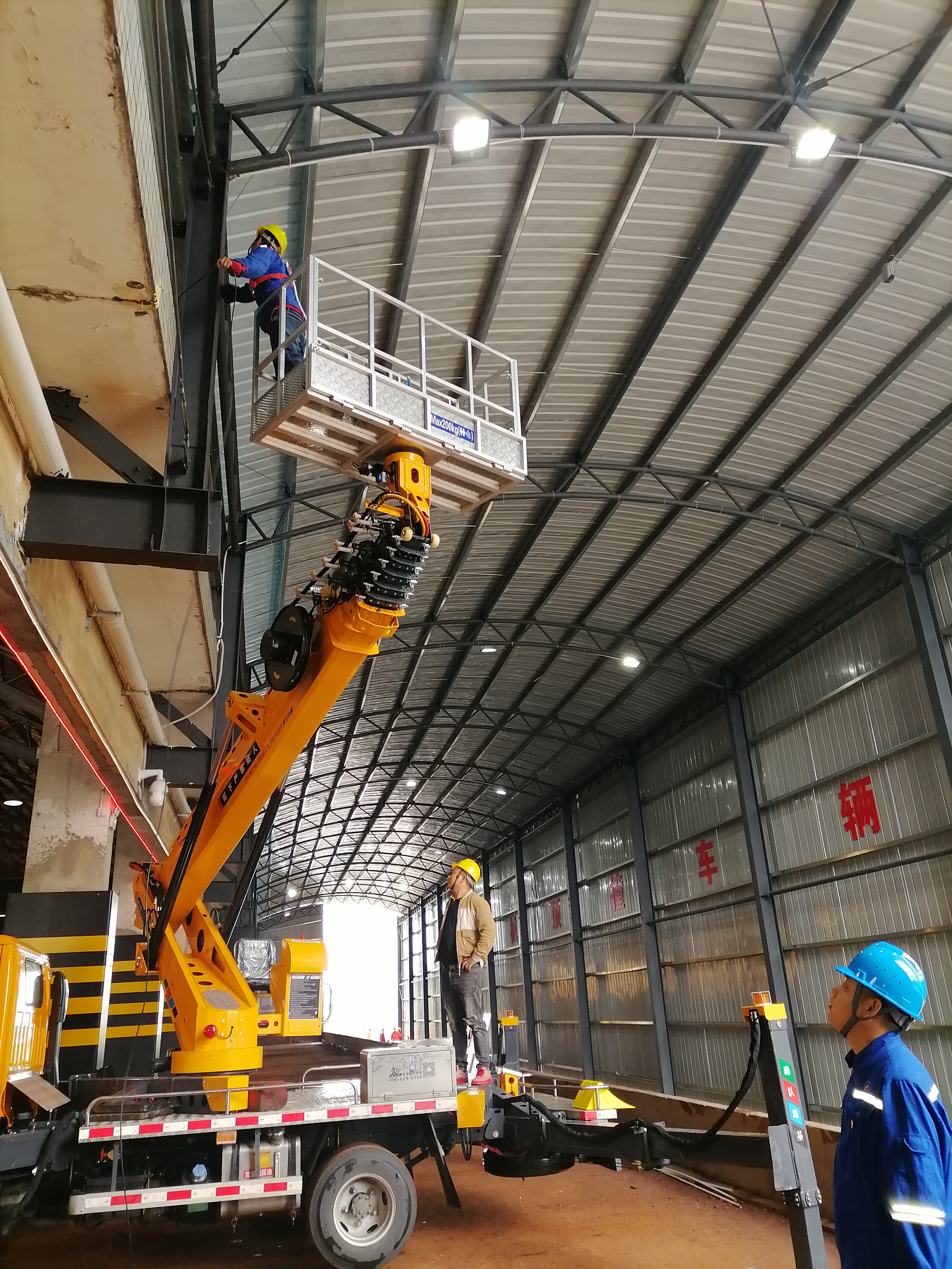 圖為“五一”期間,長(zhǎng)沙新港對(duì)轉(zhuǎn)運(yùn)倉(cāng)庫(kù)監(jiān)控進(jìn)行搶修作業(yè)。 |