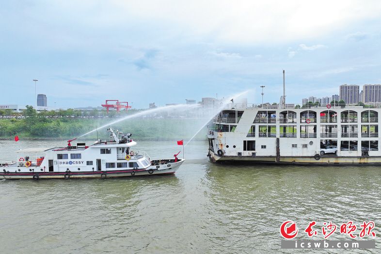 20日上午,新能源汽車起火綜合應急演練在長沙新港公司滾裝碼頭舉行。 長沙晚報全媒體記者 王志偉 攝